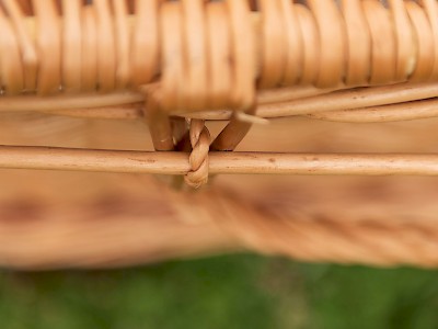 De mand is een alternatief voor de traditionele houten kisten. De mand is milieuvriendelijk, oogt vriendelijk en natuurlijk. De mand is gemaakt van wilgentenen en is 100% biologisch afbreekbaar.
